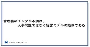 管理職の不調は偶然ではない 最近、あなたの会社の管理職の表情が変わったと感じることはないでしょうか。以前は現場の中心で判断し、部下を導いていた存在が、いまでは疲れ切った顔で報告に追われ、トラブル処理に奔走している管理職 […]