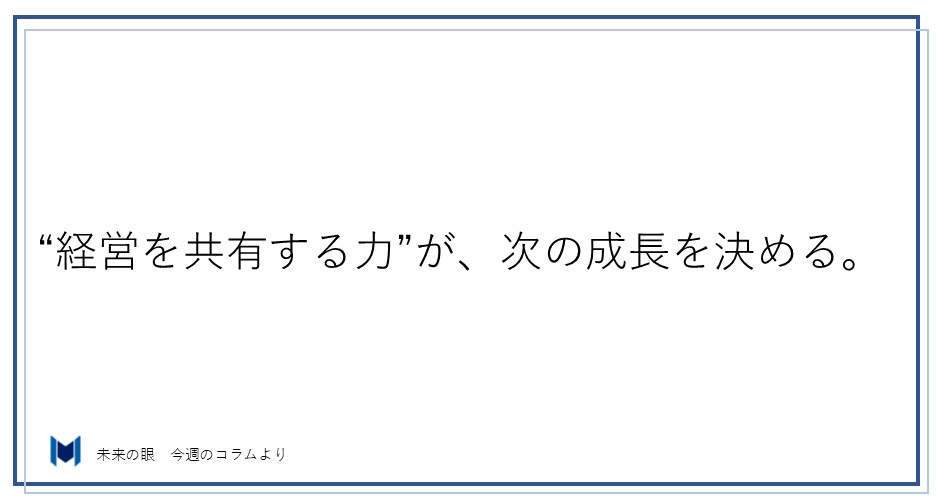 市場変化のスピードが増す今、経営の舵取りを支えるのは、社長一人のカリスマ性ではなく、経営を共有できるチーム力です。構想を語り、判断を共有し、意思決定を共に行える幹部がいれば、会社は変化にも柔軟に対応できます。経営とは未来を描く行為であり、経営を語れる人が増えるということは、未来を共に描ける人が増えるということです。その瞬間から、会社は“社長の会社”ではなく“自分たちの会社”へと変わります。経営を語れる人がいない会社は、人材がいないのではなく、語る場と仕組みがないだけです。まずは月に一度でもよいので、数字ではなく構想を語る時間を設けてください。その小さな場が、経営を共有する文化の始まりとなり、会社を次のステージへと導きます。