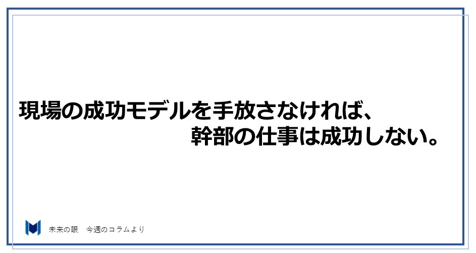 現場の成功モデルは、「自分が動けば動くほど価値が生まれる」という構造です。一方、幹部の成功モデルは、「他者が動ける環境を整えるほど価値が生まれる」というまったく逆の構造です。