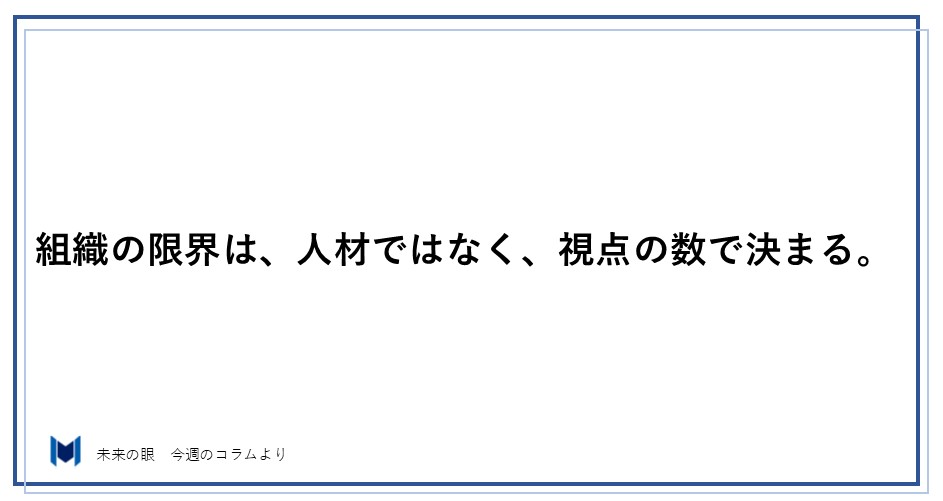 つまり、人材の問題とは、「見る目がない」という話ではなく、人を見る視点が限られてしまうということです。人事制度を変えても、評価シートを整えても、この構造が変わらなければ、判断の質は大きく変わりません。